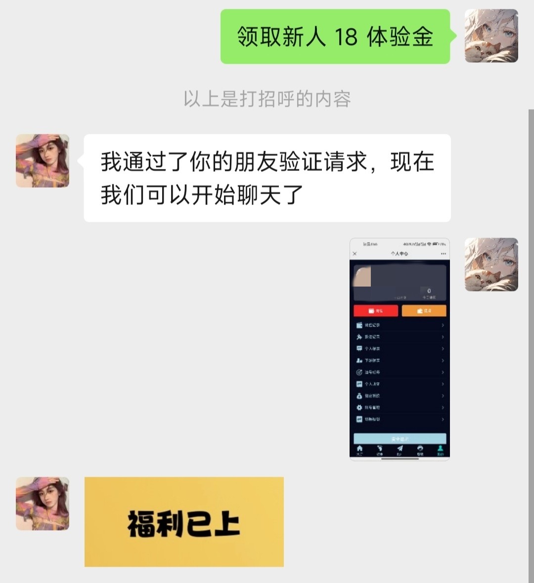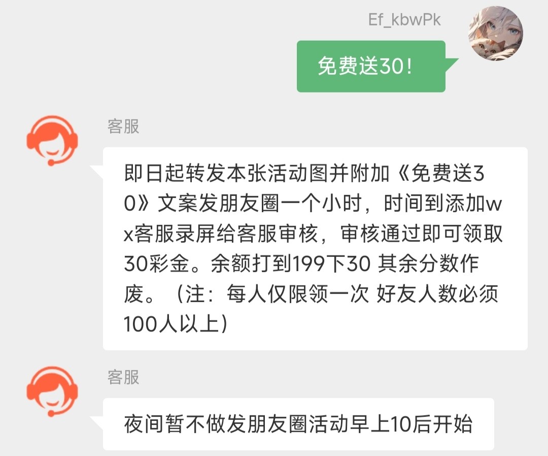 新用户微信扫码!找在线客服要微信客服的二维码添加 微信客服通过了发UID的图给他具体看下面图! 新人送18 发朋友圈送30 发群送28-280具体规则看下方图!