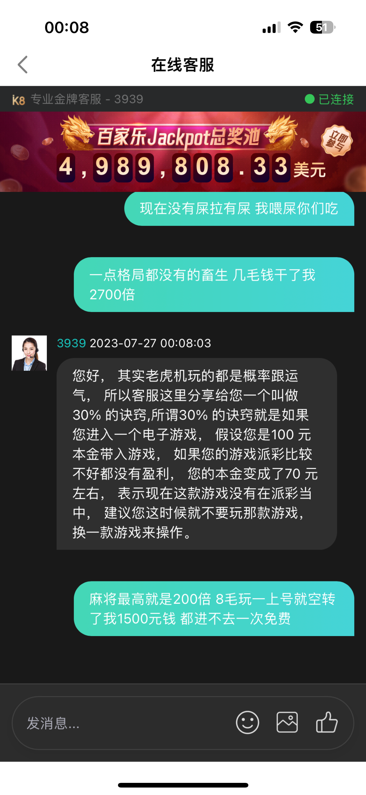 麻将8毛摇摇了2200元钱都进不去一次免费 相当于差不多3000倍的分了