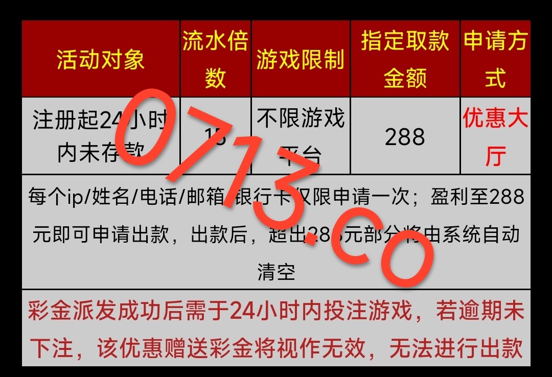 新用户注册绑卡去申请页面自助申请28元注册彩金 无游戏限制15倍流水最低最高提款288元