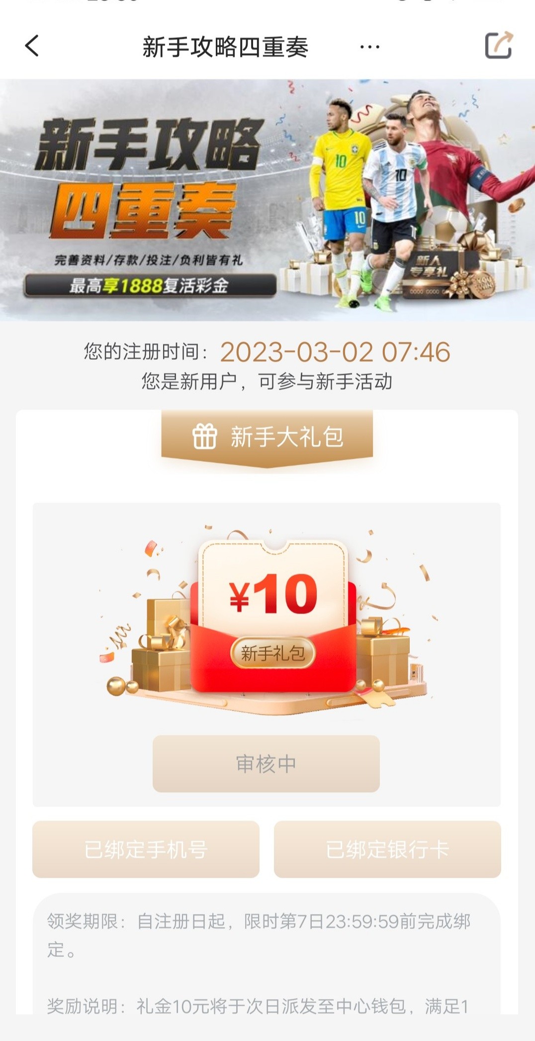完善资料绑定次日送10元,不送无视