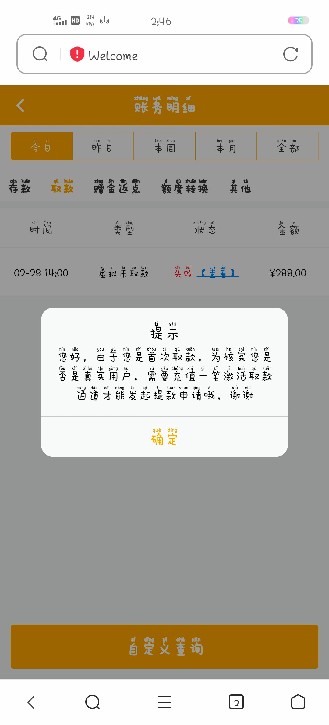 没充过,提款110给了