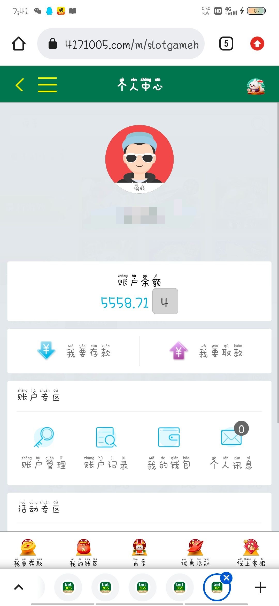 谢谢分享 一上号发现有103,兄弟们麻1小水,几十拉一免费,但是赔率太固定了,打了两个多小时最多400,上不去也输不完,直接提u了,看下可不可以出