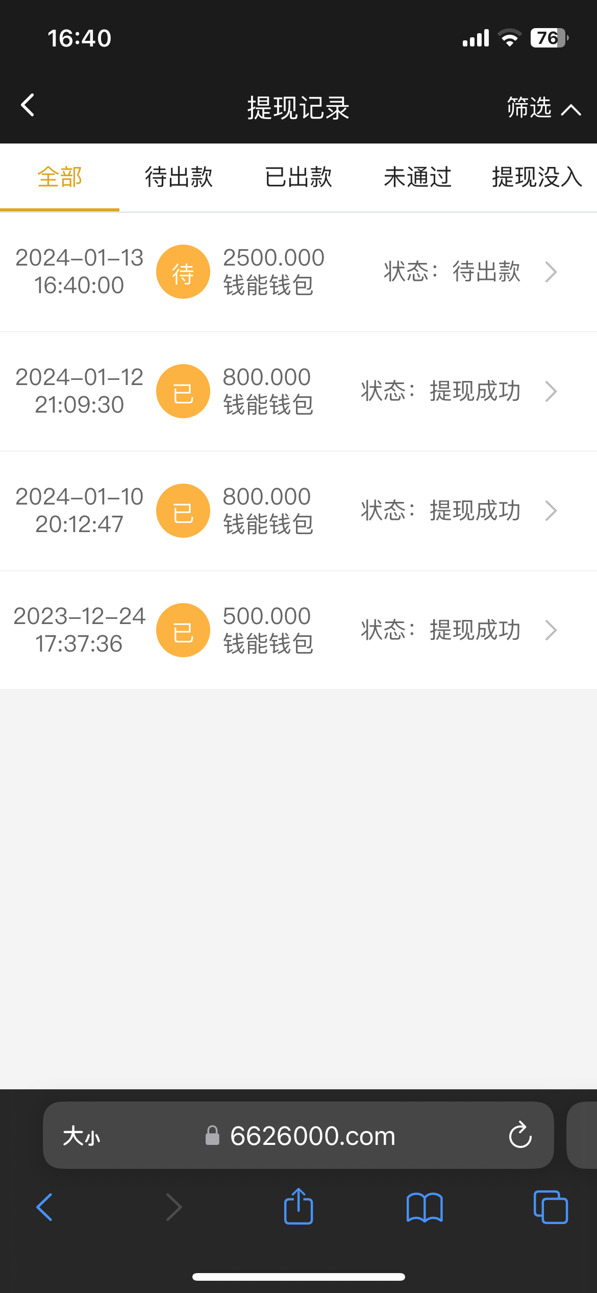 提了100到账了