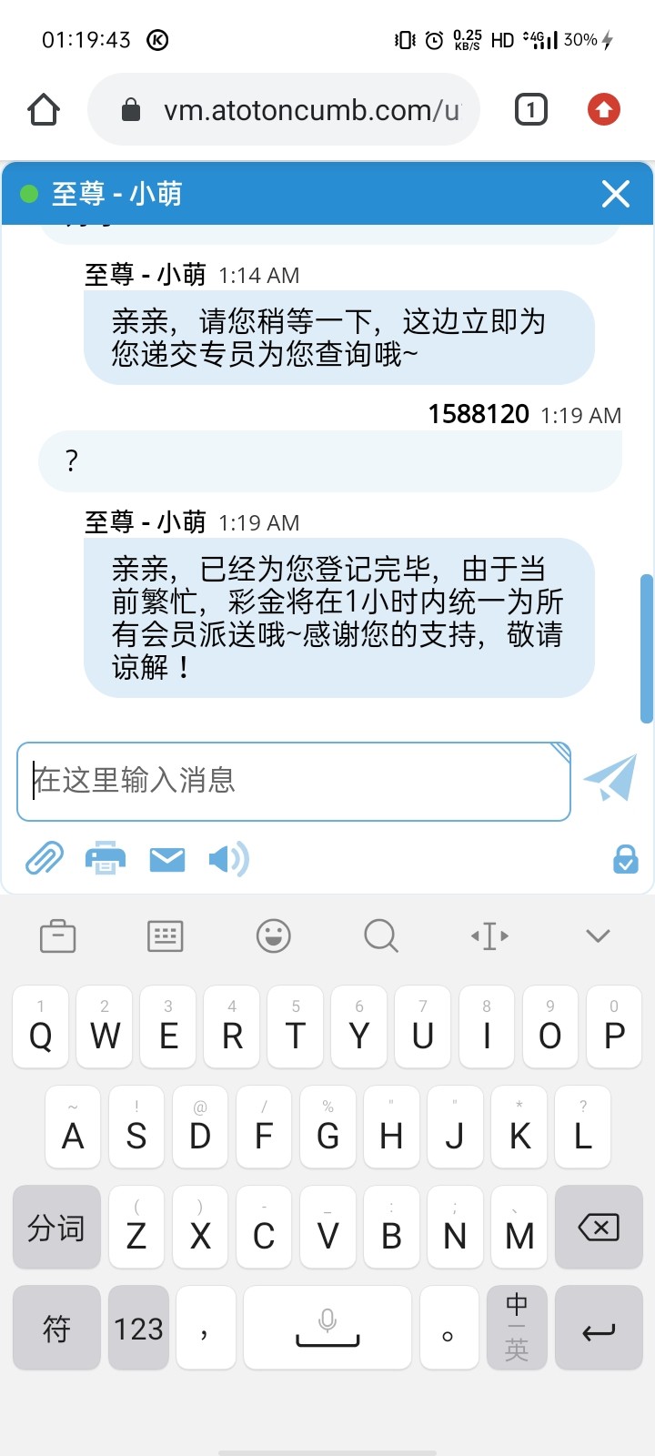 客服说一小时送