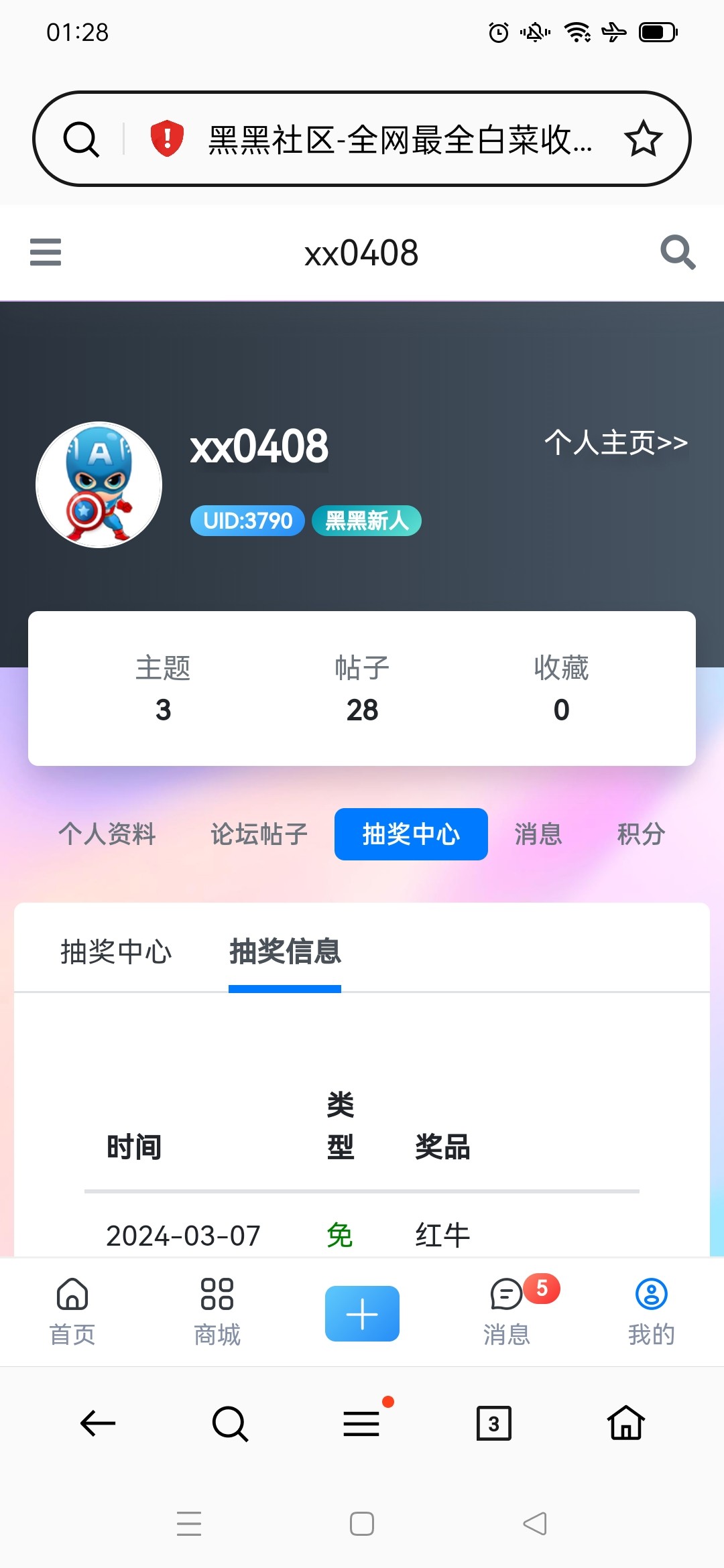 1. 点击社区首页的“抽奖”进入抽奖页面。