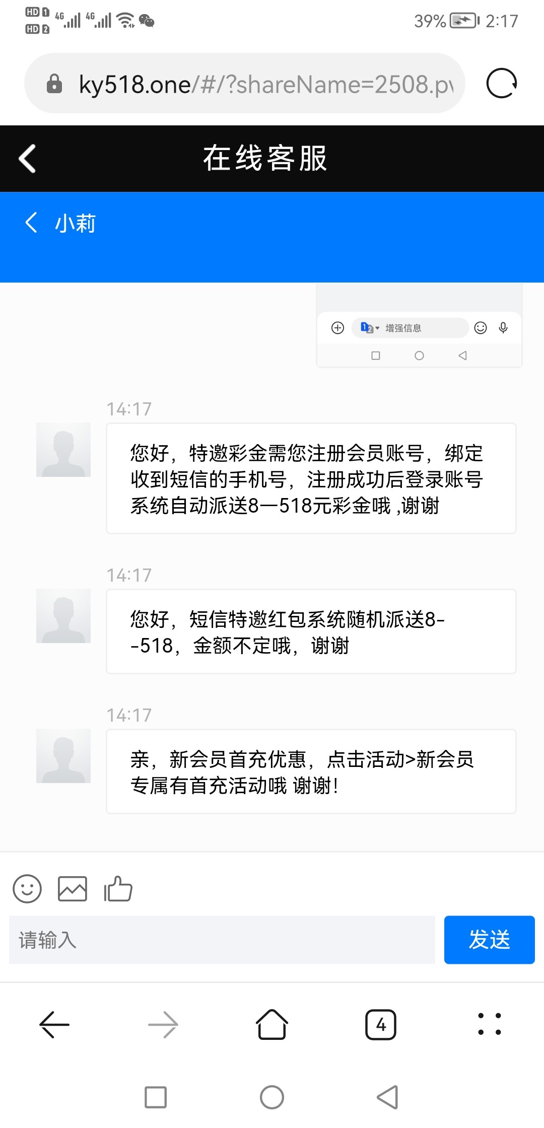 您好,特邀彩金需您注册会员账号,绑定收到短信的手机号,注册成功后登录账号系统自动派送8—518元彩金哦 ,谢谢