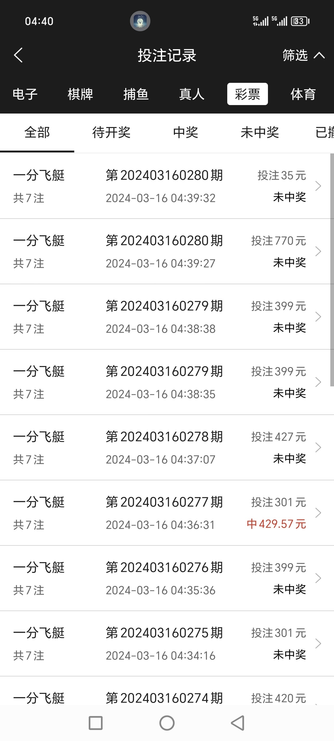 别玩什么一分 极速那些那都是平台彩 玩这种开奖结果统一的,飞艇好像有两个接口 反正我一直玩他家的 。至少能中
