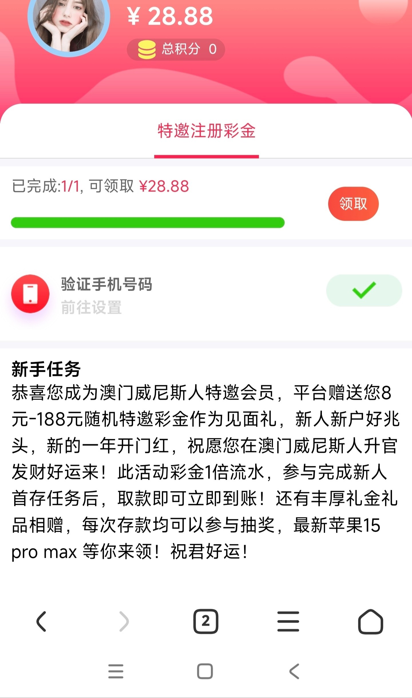 进去选威尼斯那个或者官网618c.cc和6.vin,注册后点右下角那个红包或者奖励中心新手任务那里领取,说是200提,我一个号三四次上到190几硬是上不去了,四个号都打不出来不知道能不能出,两次150左右进了免费加起来不到二十倍,感觉很垃圾别充值!