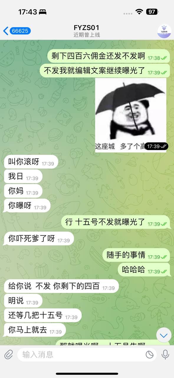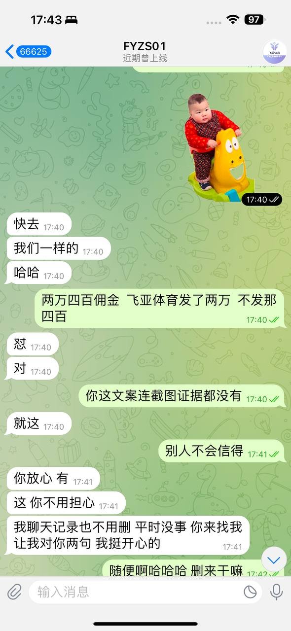 曝光飞亚体育,本人还有四百六佣金没发,规划师也说不会发了叫我随便曝光,OK我随你愿,飞亚这个平台很垃圾,他们发上个月的佣金还要看你下个月发不发展, 其它包网也不会这样吧,难不成代理们这个月做,下个月想换台发展了你们就不发佣金吗?这什么逻辑 还有我五月份开的线的人头费流水费,他们不单单看六月份的留存率,还要看七月份那些老玩家玩不玩才给你审核的全网仅此一家!      都这么拖沓了我怎么可能还叫玩家继续玩下去呢? 发的一部分佣金还是我天天画大饼舔招商才给我,现在好了直接黑呗,望广大代理开开眼不要继续干飞亚了,柬埔寨的包网,佣金难说,人头费流水费是不可能给你发的,我了解到的没有一个代理拿到五六月份的流水费人头费,他们赶这波欧洲杯后就跑路了跟当初的企鹅一样!!!