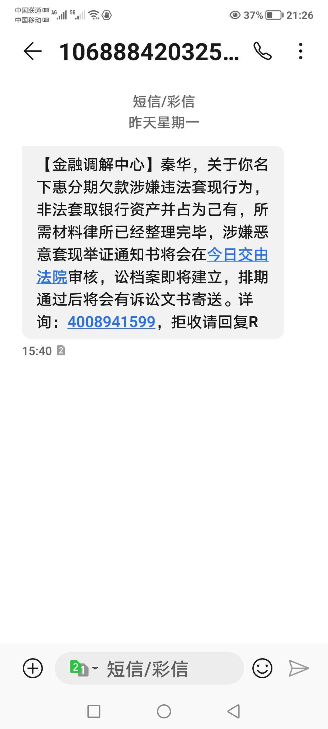 我这个手机号每天都能收到这四个人的催款信息,关键是这四个人我一个都不认识。