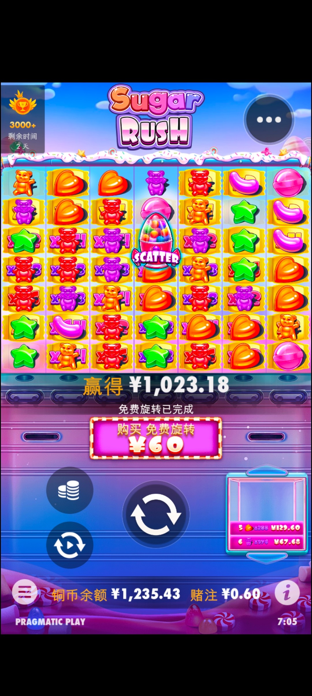 送了139提了251太难打了免费进了十多次1.8炸七块女王2块爆19