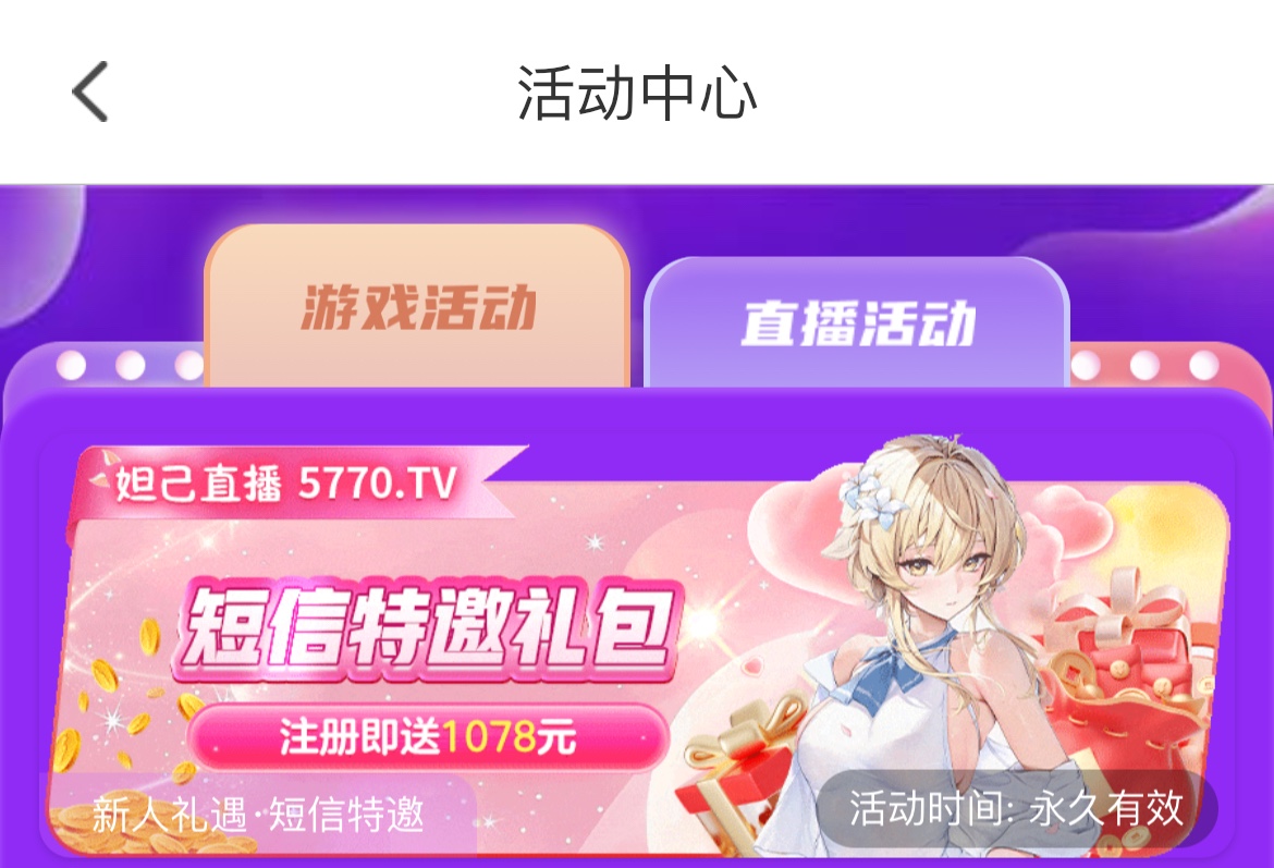 这种直播特邀基本人人都有,注册绑定银行卡复制ID到活动里面申请就行