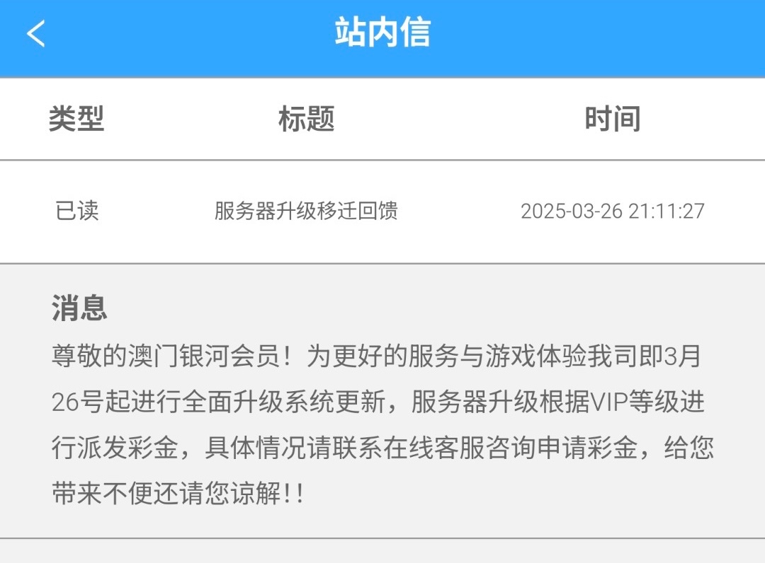 有号的兄弟上号看看站内信有没有通知,是更具VIP等级派发彩金的