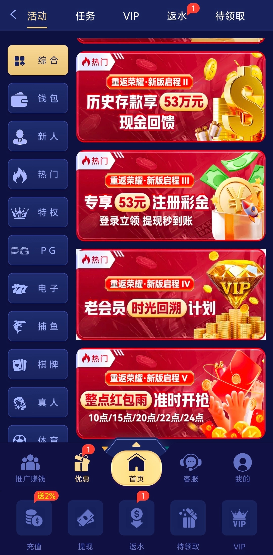 可以去看下未充值也可以领取,还有红包雨可以抢