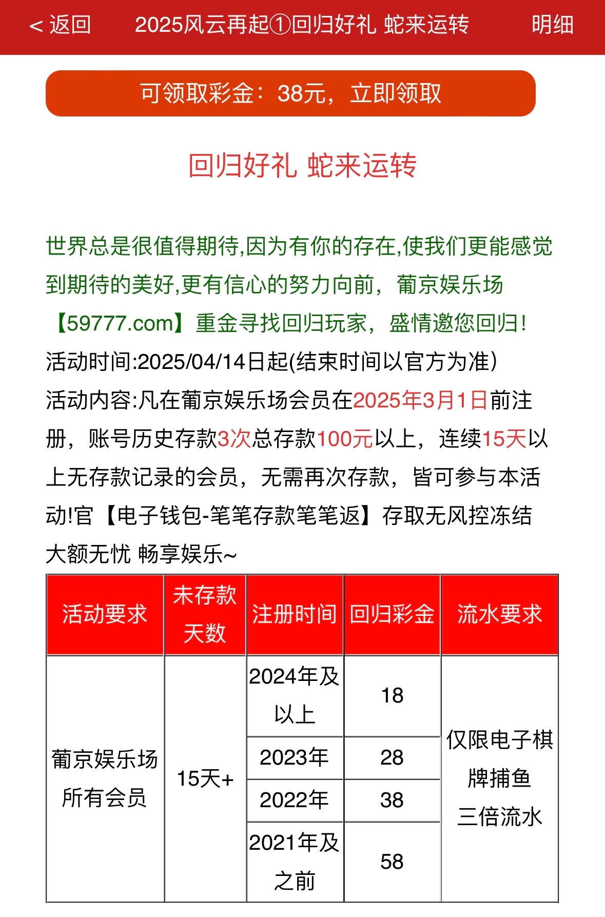 符合的兄弟可以上号领取一下,送18-58彩金