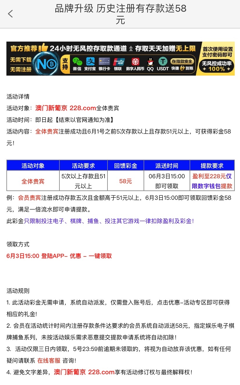 6月1日之前注册的兄弟可以上号领一下彩金,限电子捕鱼棋牌,具体自行查看优惠