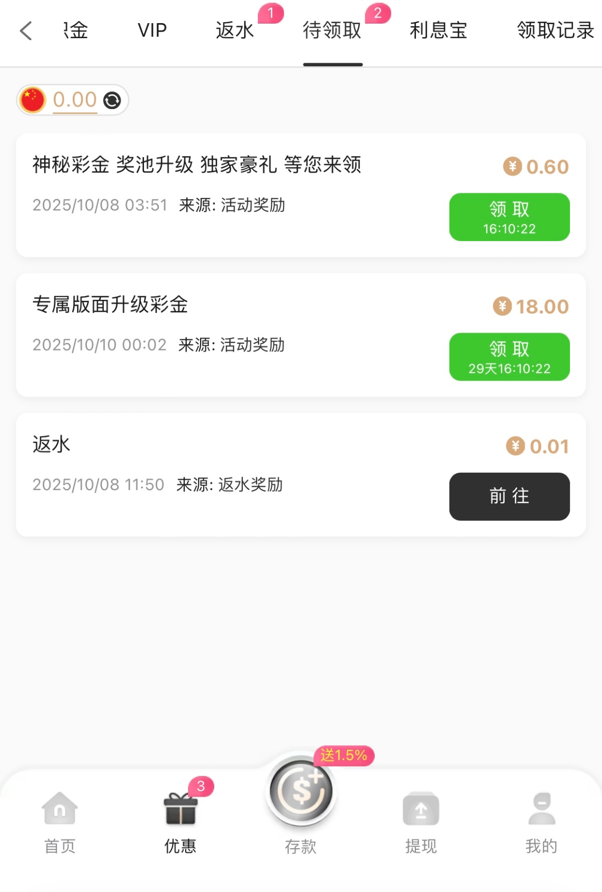 有充值过的兄弟可以上号看看优惠-待领取里面有没有