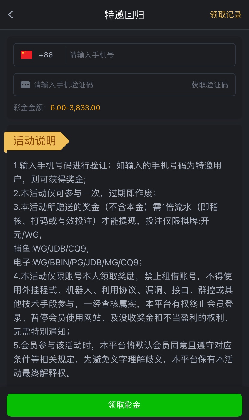 特邀碰瓷注册好优惠里自助领取,一倍流水,仅限电子棋牌捕鱼