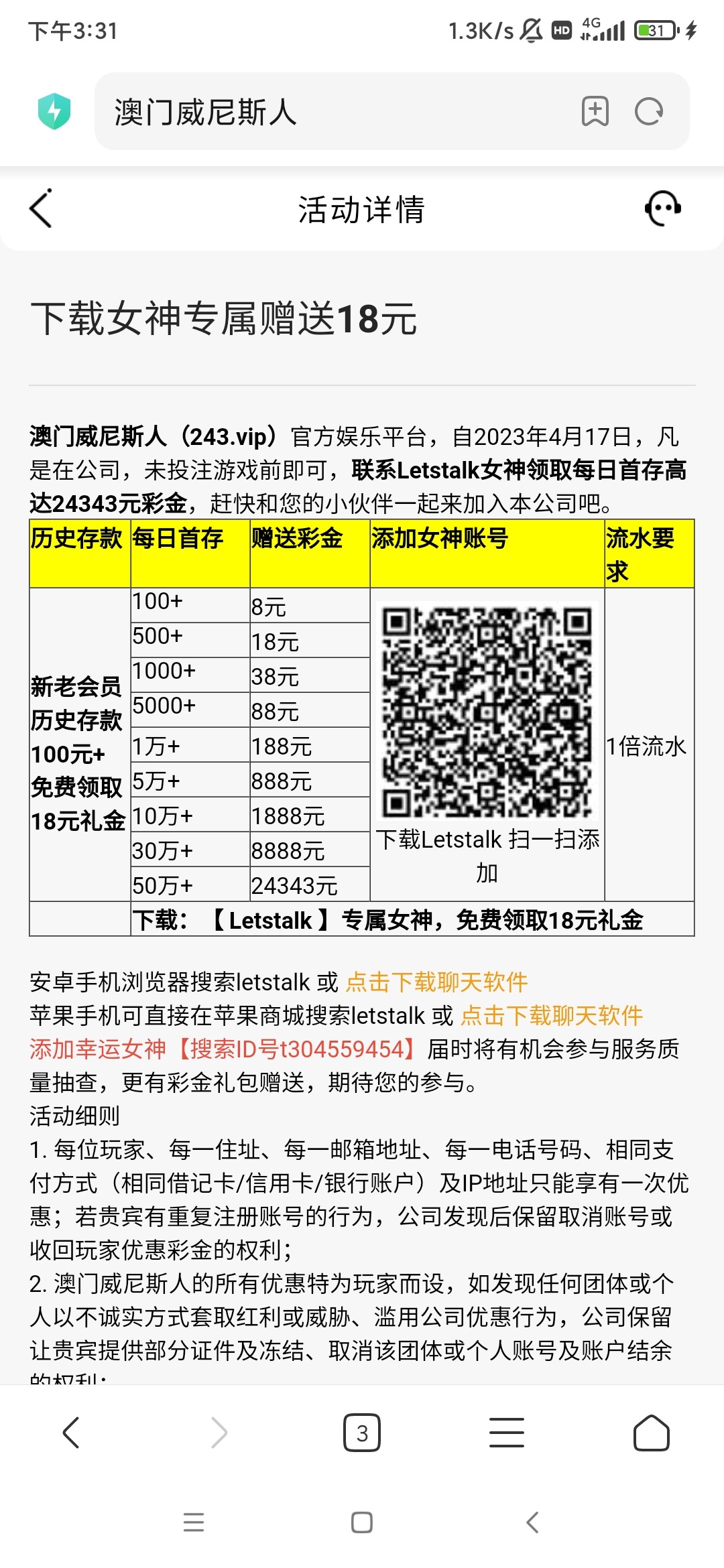 看图有过存款的下载聊天软件加客服秒送!没存款过的无视!活动刚出!