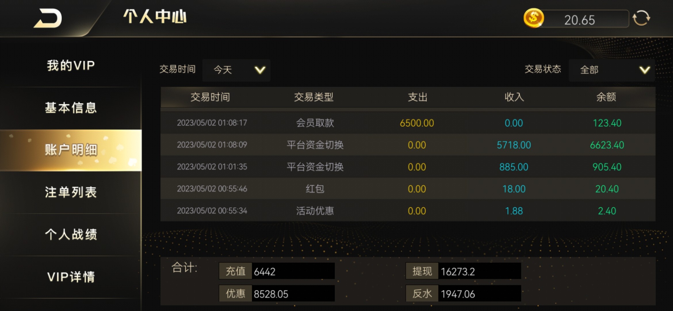 开心棋牌(以前的万亿贵宾会)今天上去看了眼发现有 18 的五一会员回馈,然后去打新版五龙捕鱼爆了一个 9000 倍,四五个 4000 倍,然后提现 6500 退回叫我打 5 倍流水,打完提现 16001 还是退回再来五倍,我本来都不报希望当试玩了,没想到这次提现 10800 到账了,美滋滋!随机挑选几个幸运老哥 28.88