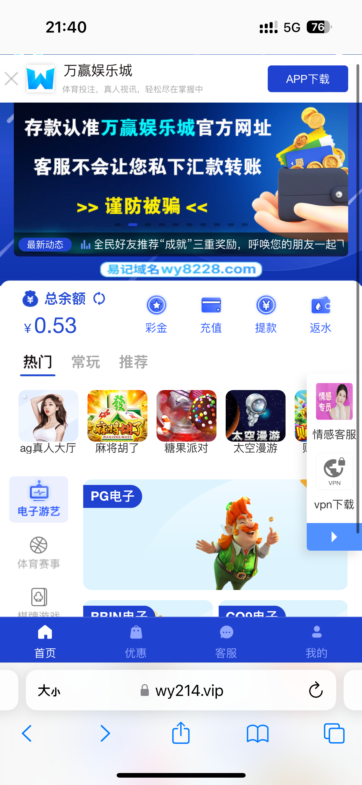 玩了两年了 一个星期来一次电话叫存100+108 赢了黑了 之前存了20次钱 一次没提款过 麻将私人接口存了20次钱0.8毛吃了一万倍进不去一次免费 3天3夜