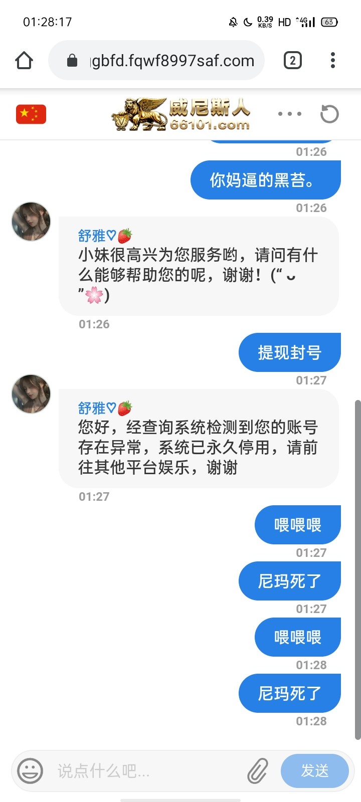 避雷66101威尼斯,同模板一起避雷,打电话跟我说签到领彩金,不需要流水就可以提现,我玩pg电子打了200流水好不容易打到一百,提现直接冻结账号,希望各位老哥遇到了不要充值,充值死