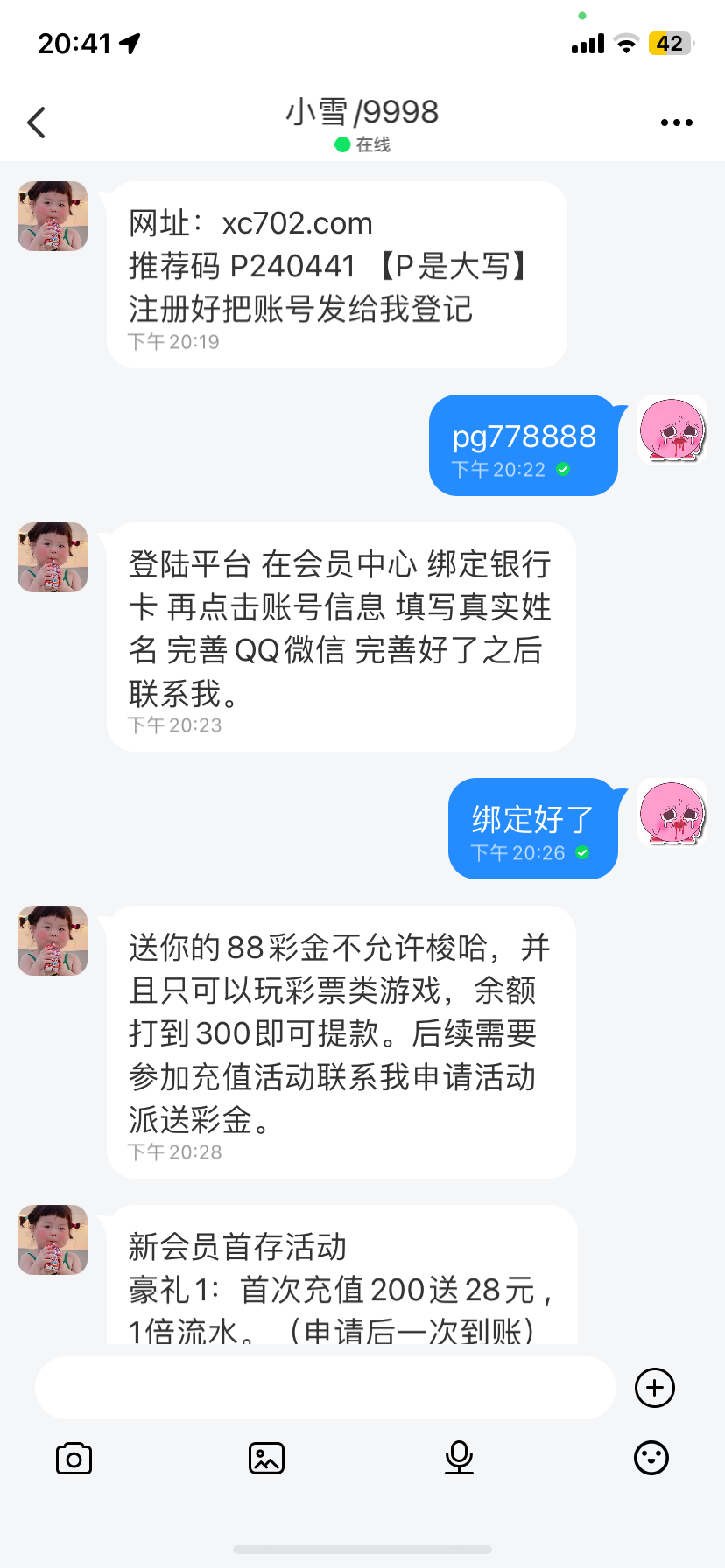 下载软件注册账号自动加上客服的说申请300彩金因为他打电话过来是说送300