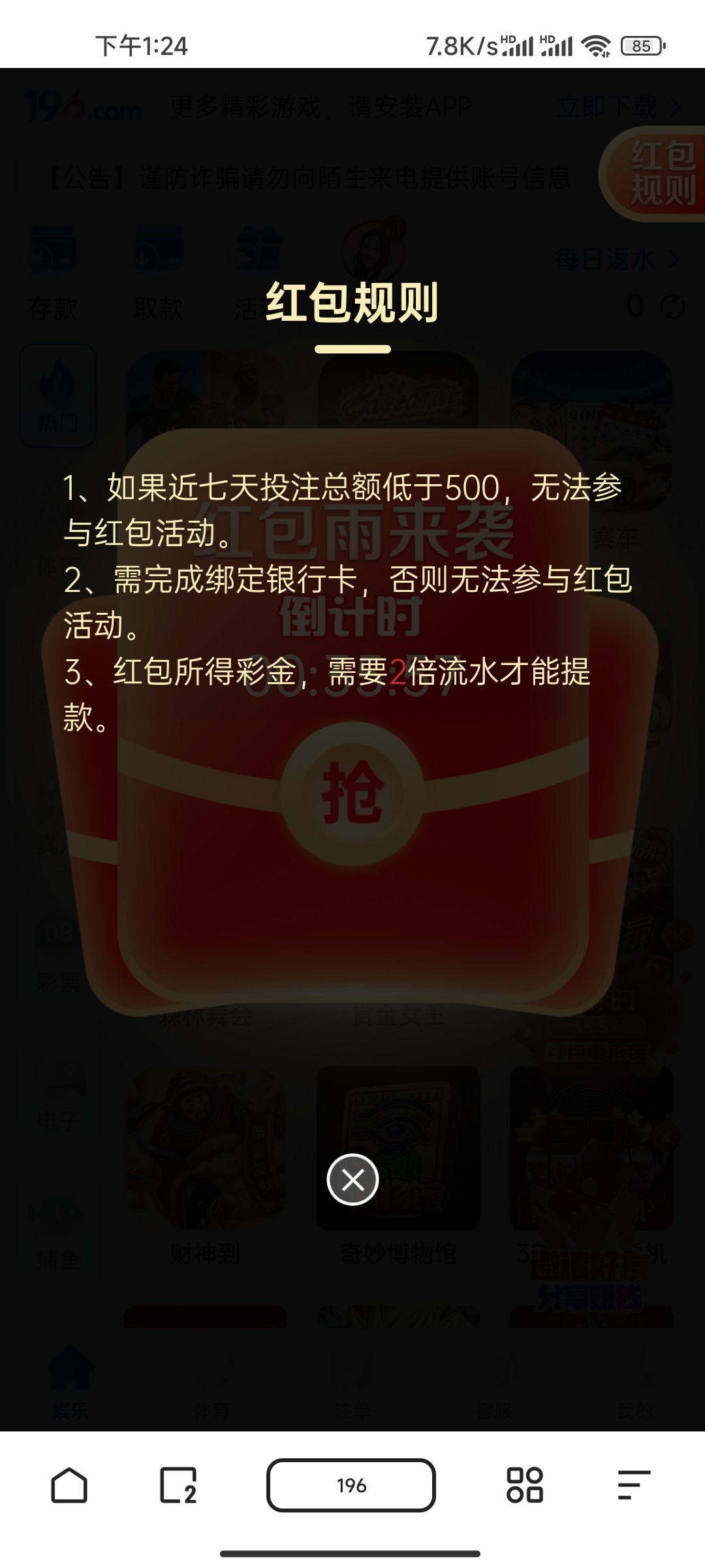 老用户去抢红包 没完善资料没绑卡的可以完善一下,好像新人也可以抢 抢到的红包2倍流水