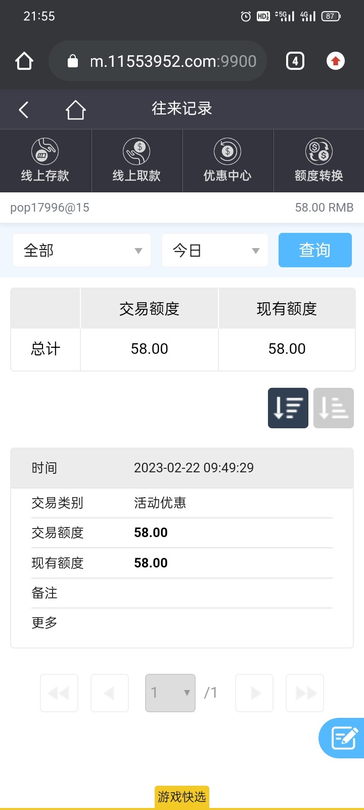 我首存50加55的提了150,后面论坛看到特邀58,妈的,去短信一搜,还真的有短信,有去申请,送了58,提了100