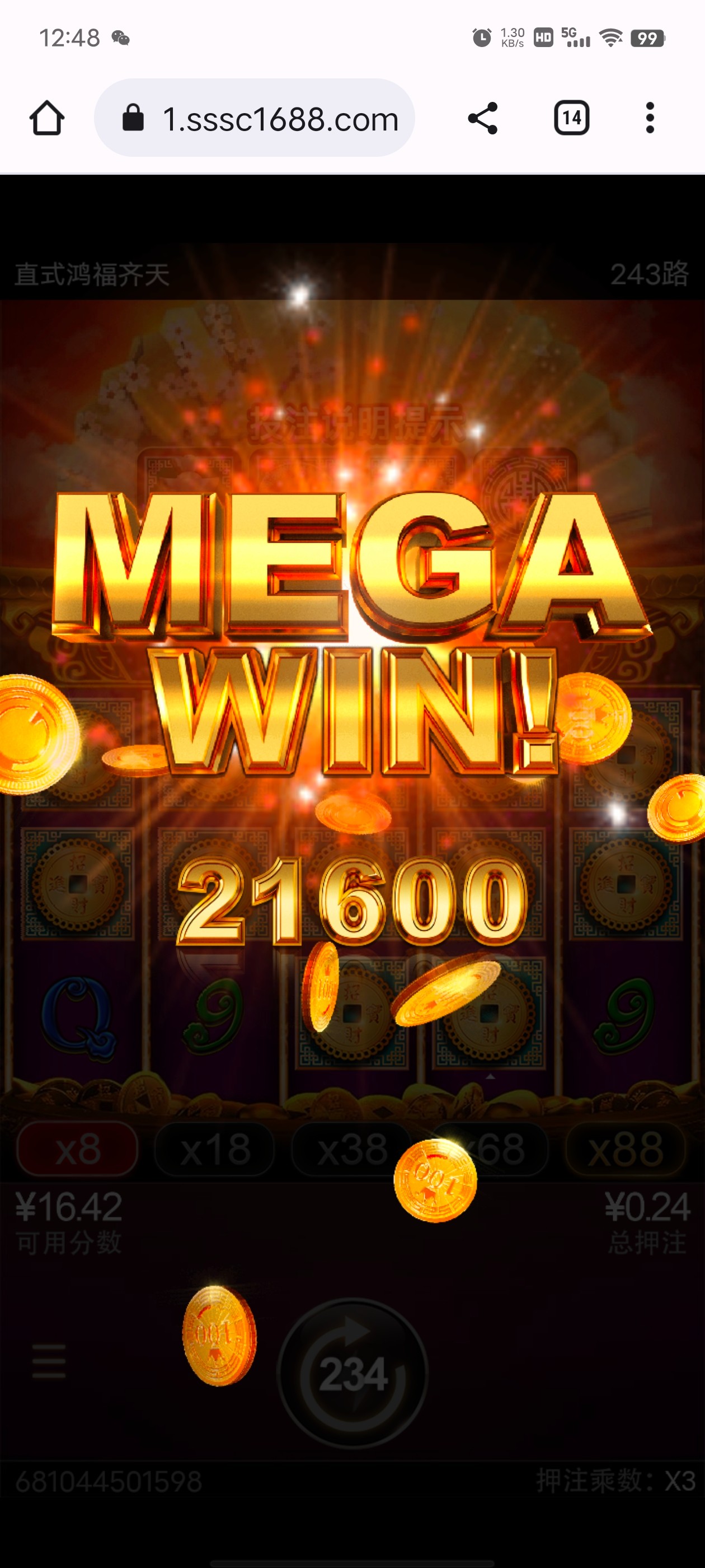 玩一年都不一定能遇到一次麻将这样给爆