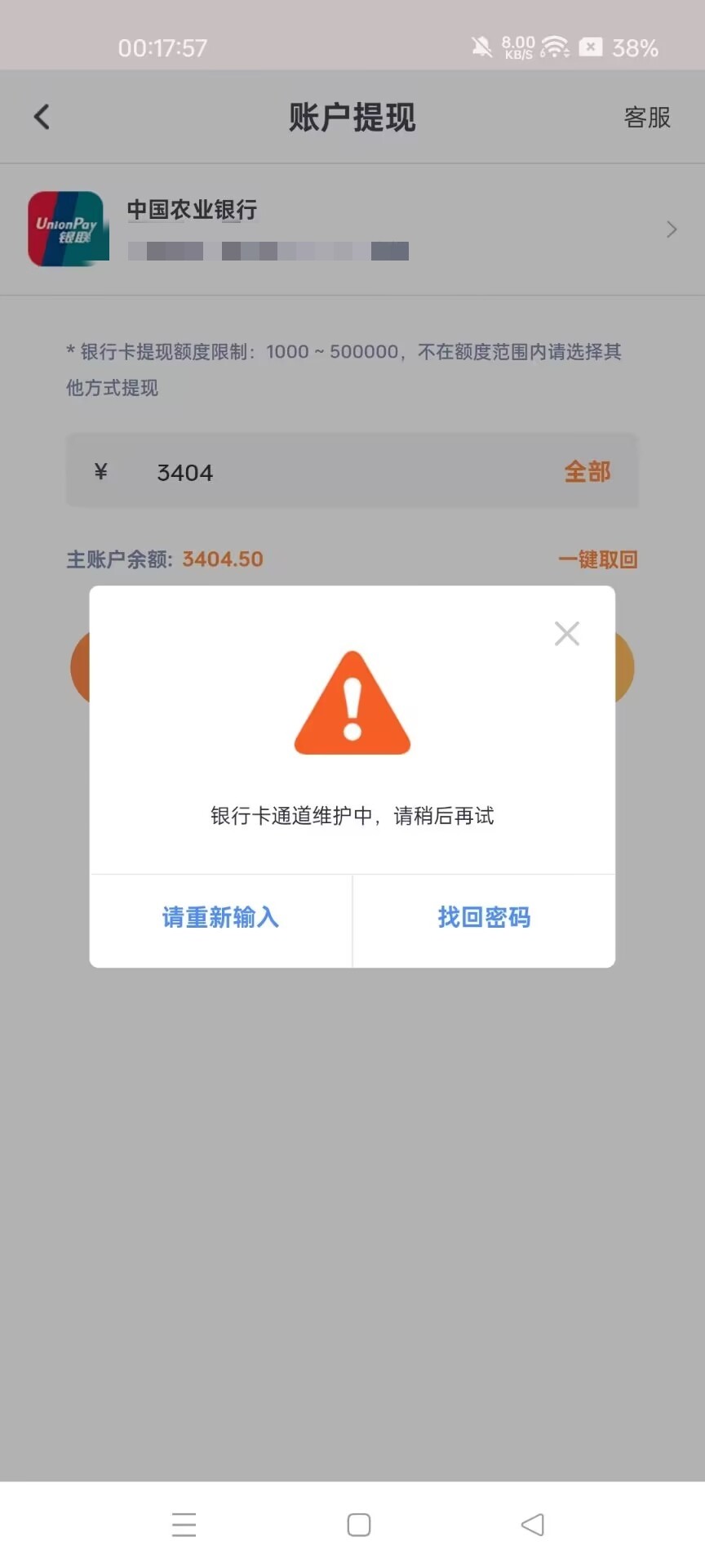 提现通道全是维护提交不了的,一问客服就只会说等等等,明天起来应该就封号了