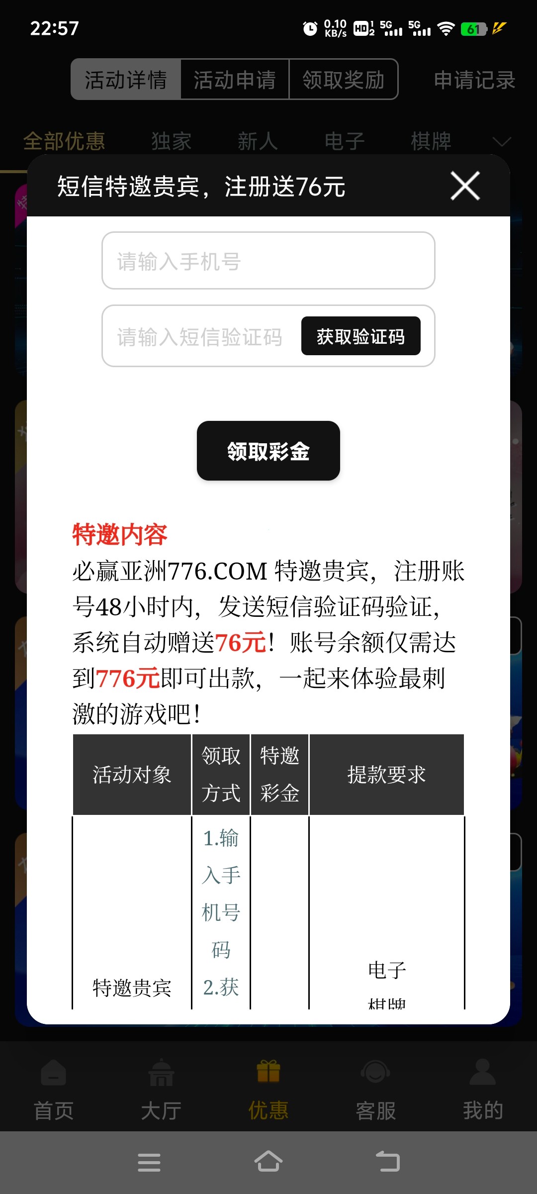 我刚注册的号都送了,特邀的那个76,手机号多的都试试,没必要收到短信,我三个手机号,有两个收到了