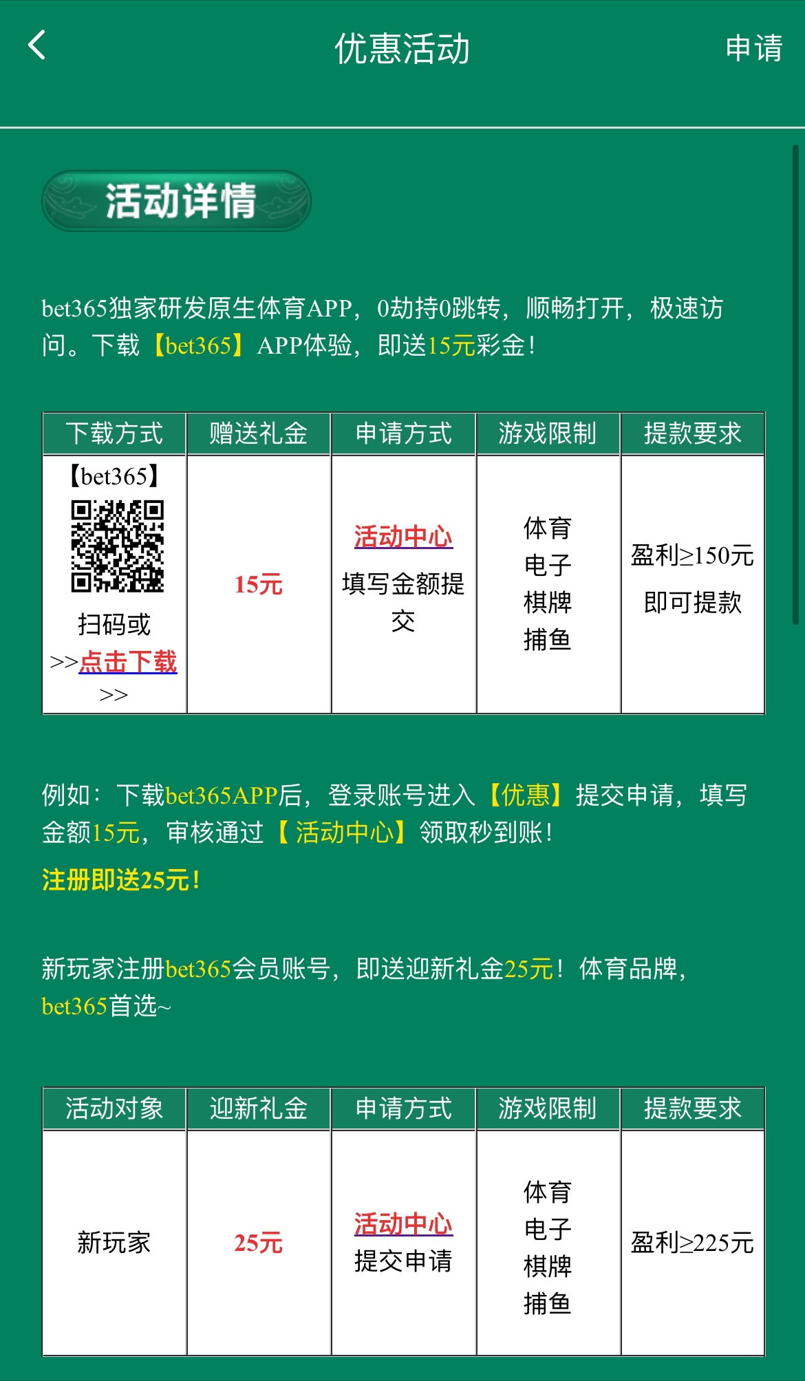 下载APP注册,绑定银行卡完善资料,优惠里申请,15彩金要盈利150/25彩金要盈利225限电子棋牌捕鱼体育