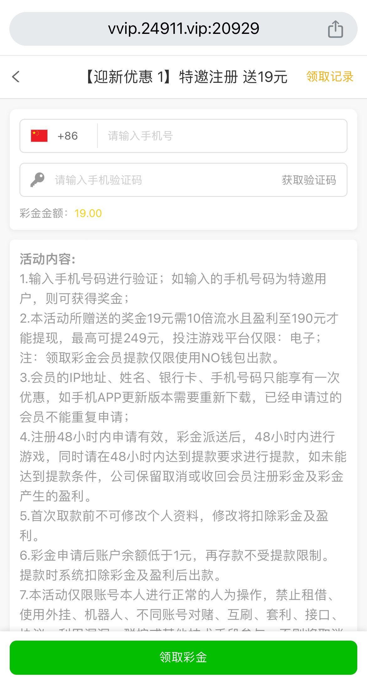 特邀注册送19,10倍流水,要盈利至190以上才能取款,只能用NO钱包取款,优惠限制自行查看