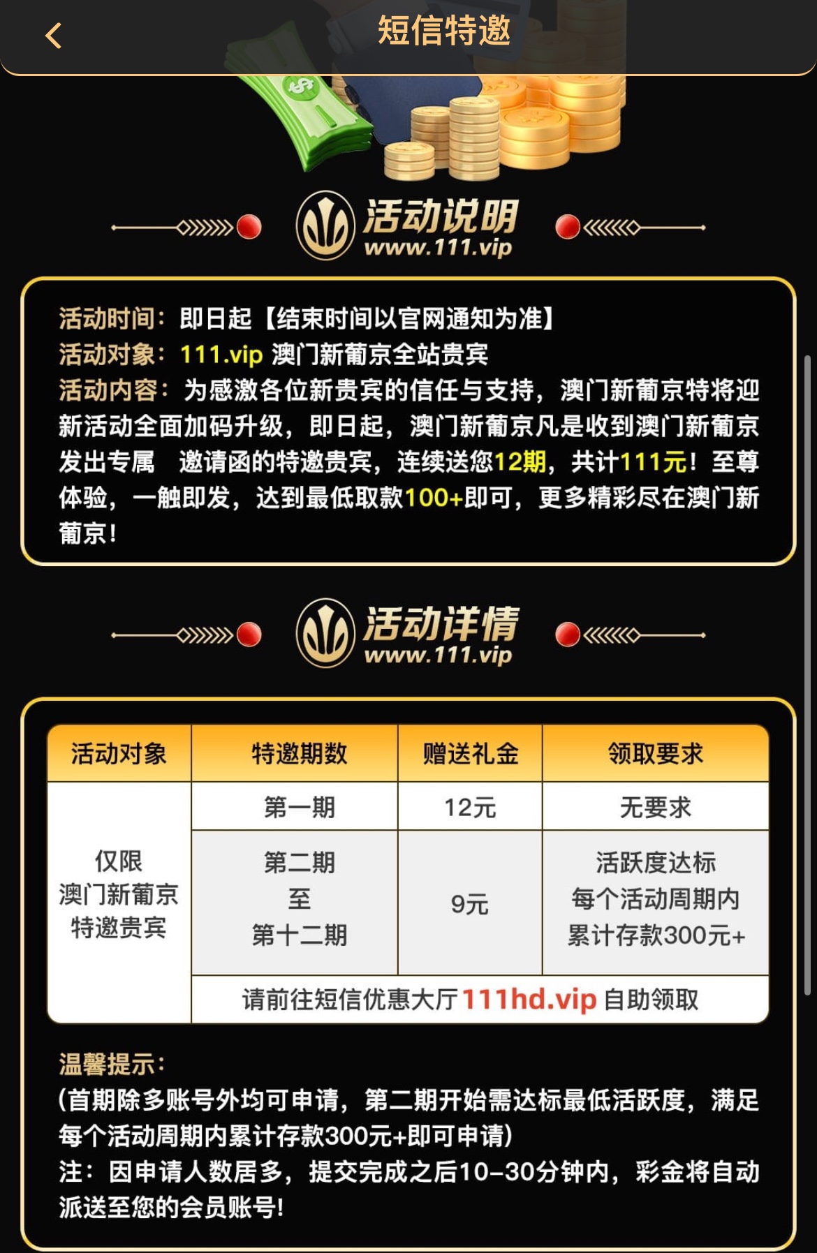 碰瓷短信特邀,注册完善资料,优惠大厅申请彩金