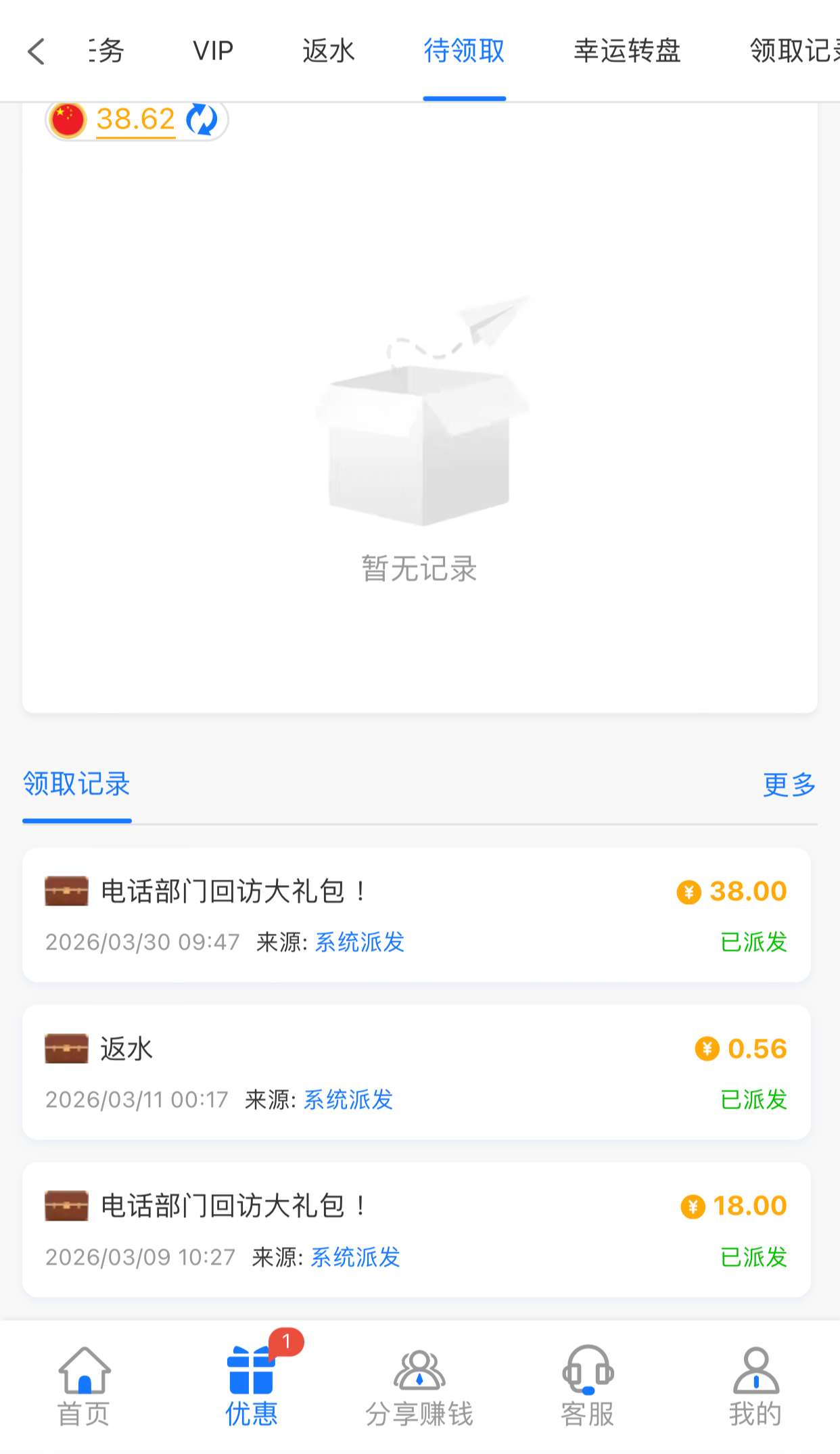 原8022有账号的老哥可以登入上账号查看优惠是否有电话回访彩金领取,只要在回访名单彩金统一在优惠-待领取里