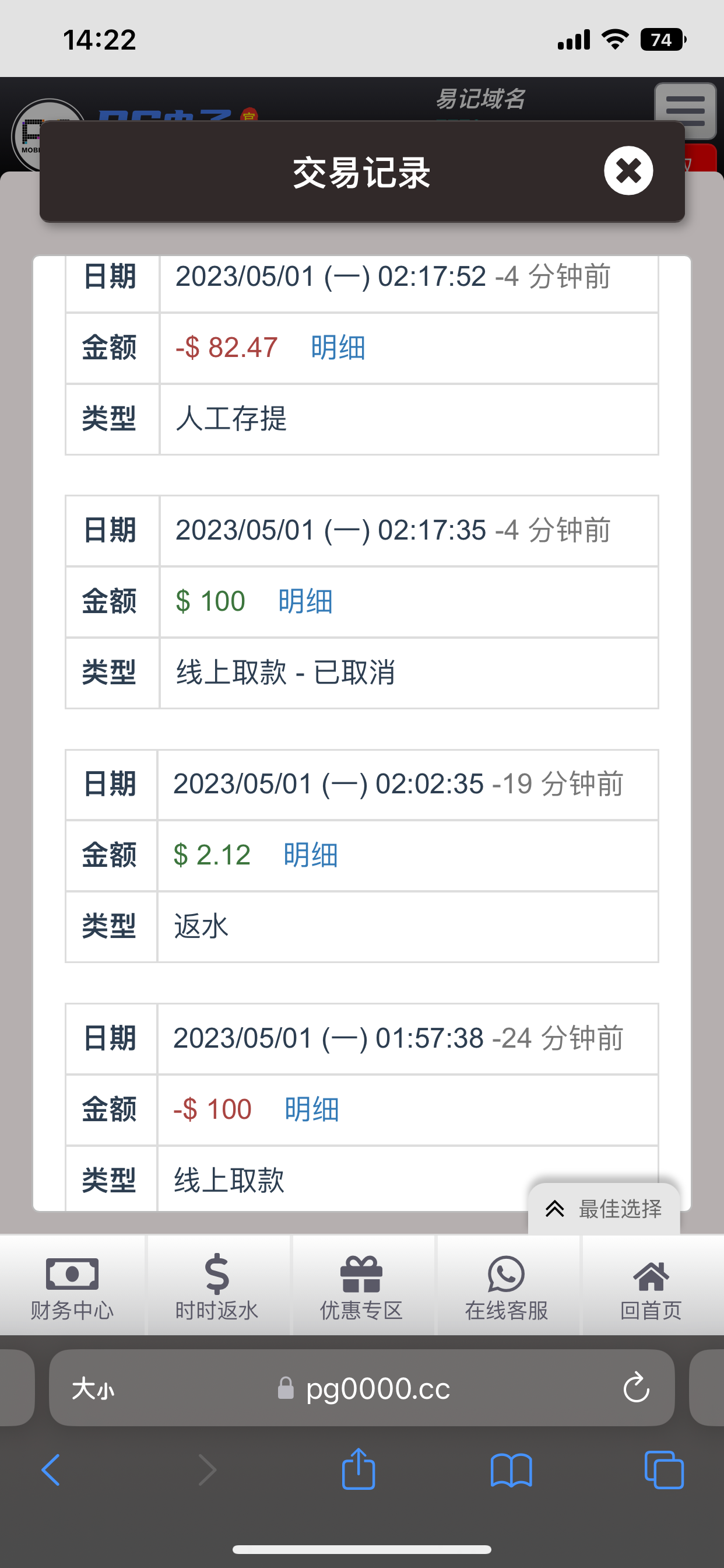 我只想说别高兴的太早。以前特邀没打出来,这次18,麻将1,1块钱一直磨,近60手不让我噶,也不爆,最后剩3块左右进胡200倍。然后又去买了几手夜醉佳人,提200,提现稽查成功。审核就稽查失败,清空余额,傻逼客服说我亏损完了,就尼玛离谱,还不如不给