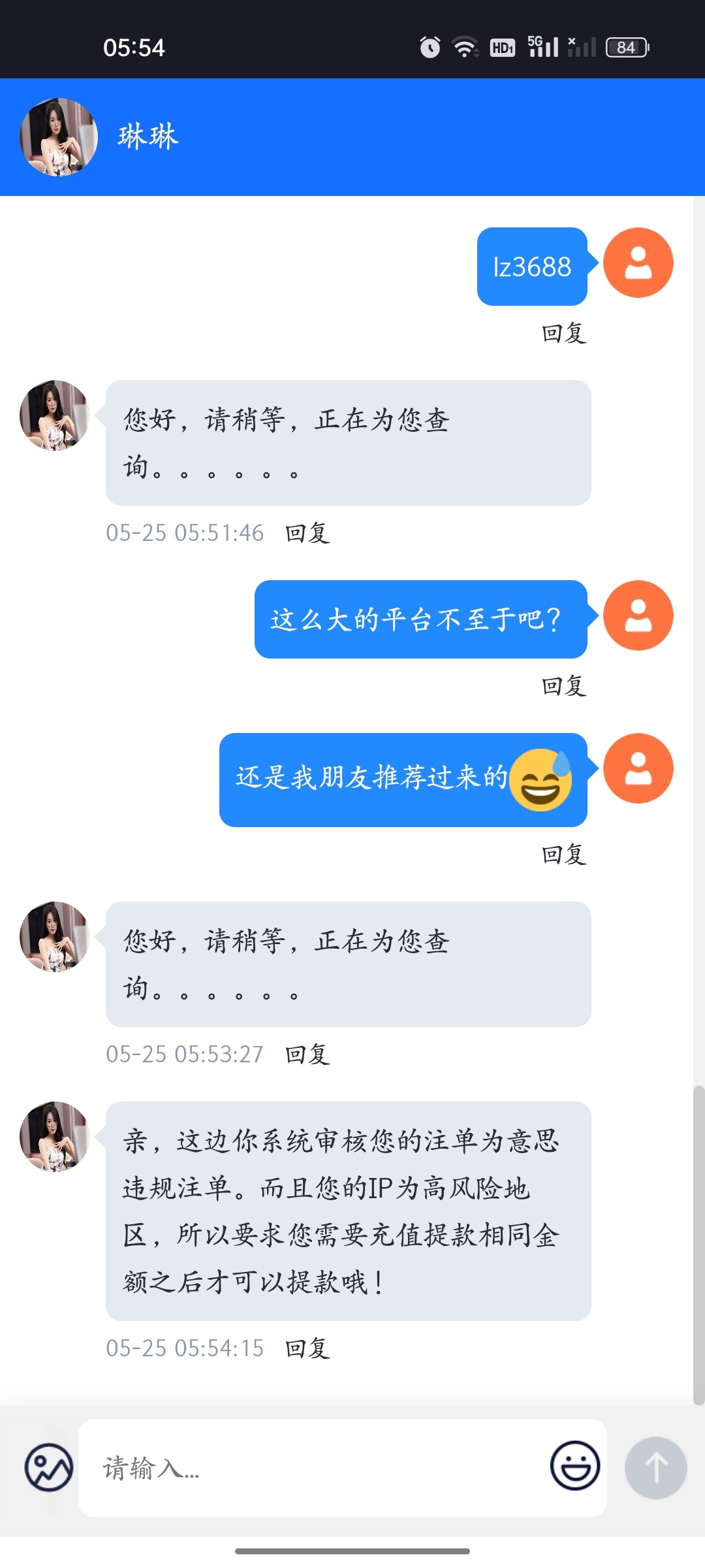 注意看他回复你的文字 意思违规投注 你充值他是不是还可以继续说你违规投注呢 没有必要上